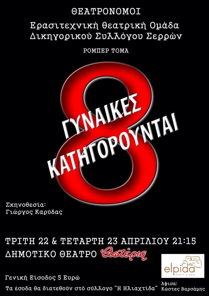 Η ερασιτεχνική θεατρική ομάδα του Δικηγορικού Συλλόγου της πόλης μας με την επωνυμία “Θεατρονόμοι” διοργανώνει θεατρική παράσταση, μέρος των εσόδων δίνονται στην Ηλιαχτίδα.